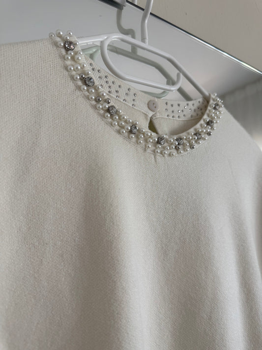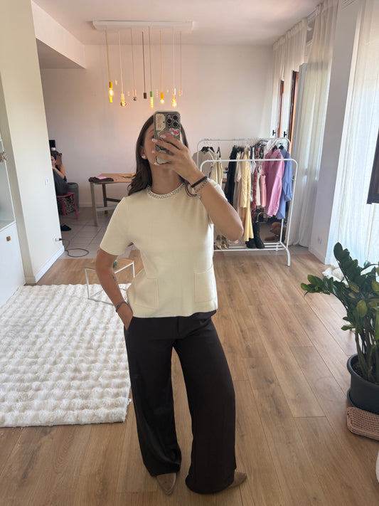 T-shirt / maglioncino con tasche e dettaglio girocollo - PANNA