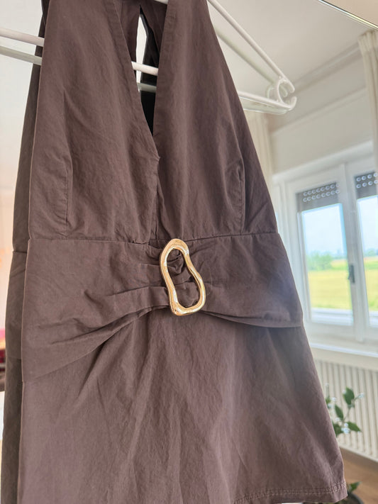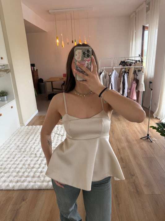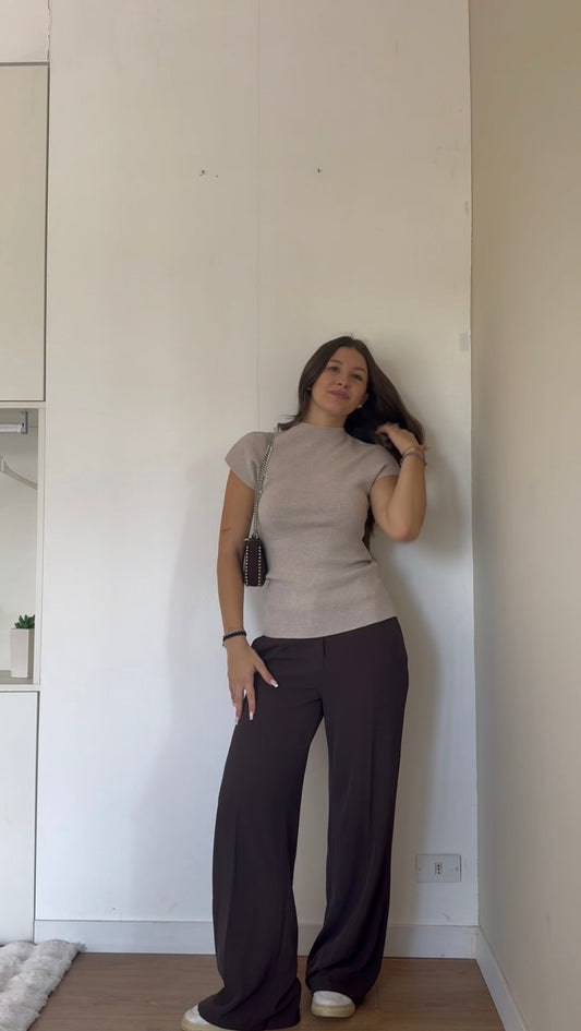 T-shirt con spalline imbottite e maniche leopardate - Marrone
