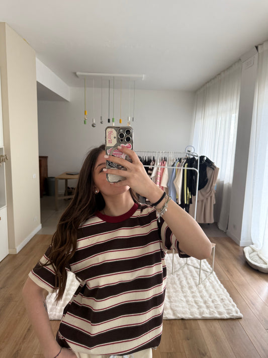 T-Shirt Lumina a righe Marrone, Panna, Bordeux