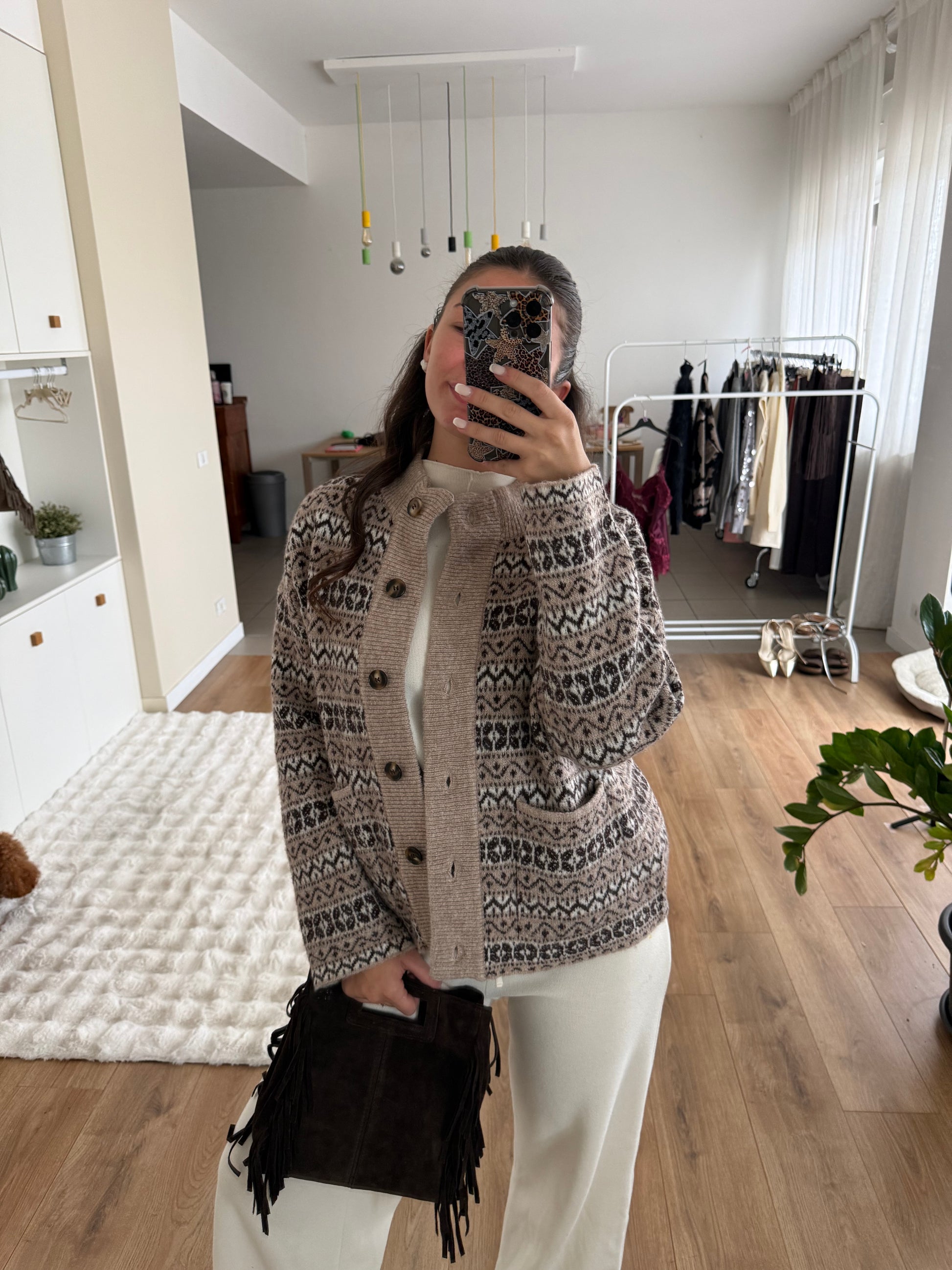 Borsetta “square” scamosciata con frange - Marrone - in vera pelle