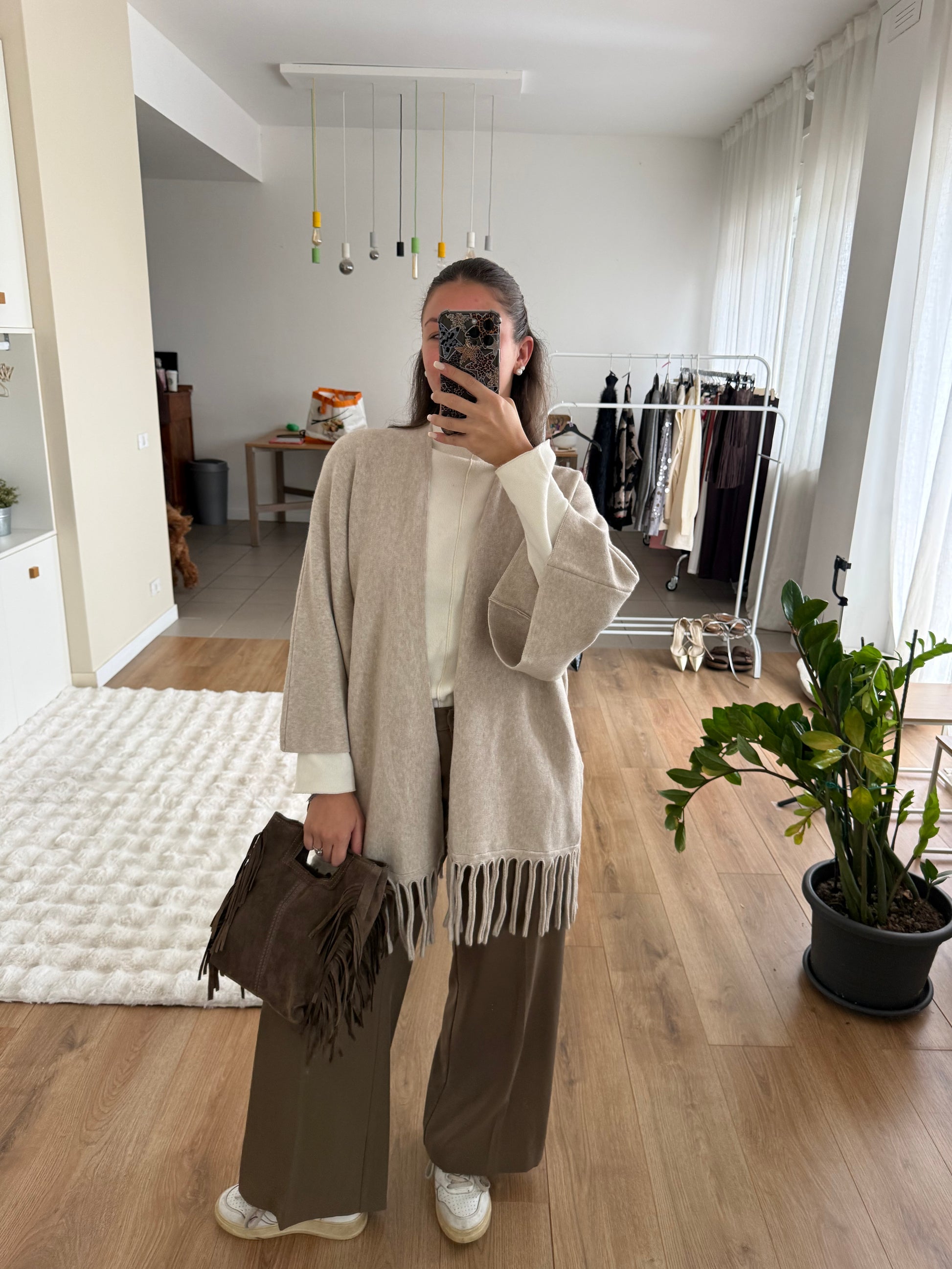 Indossato con la nostra borsa scamosciata con frange